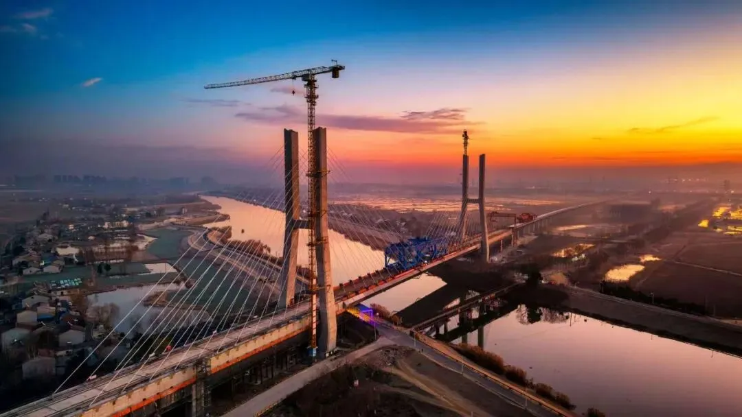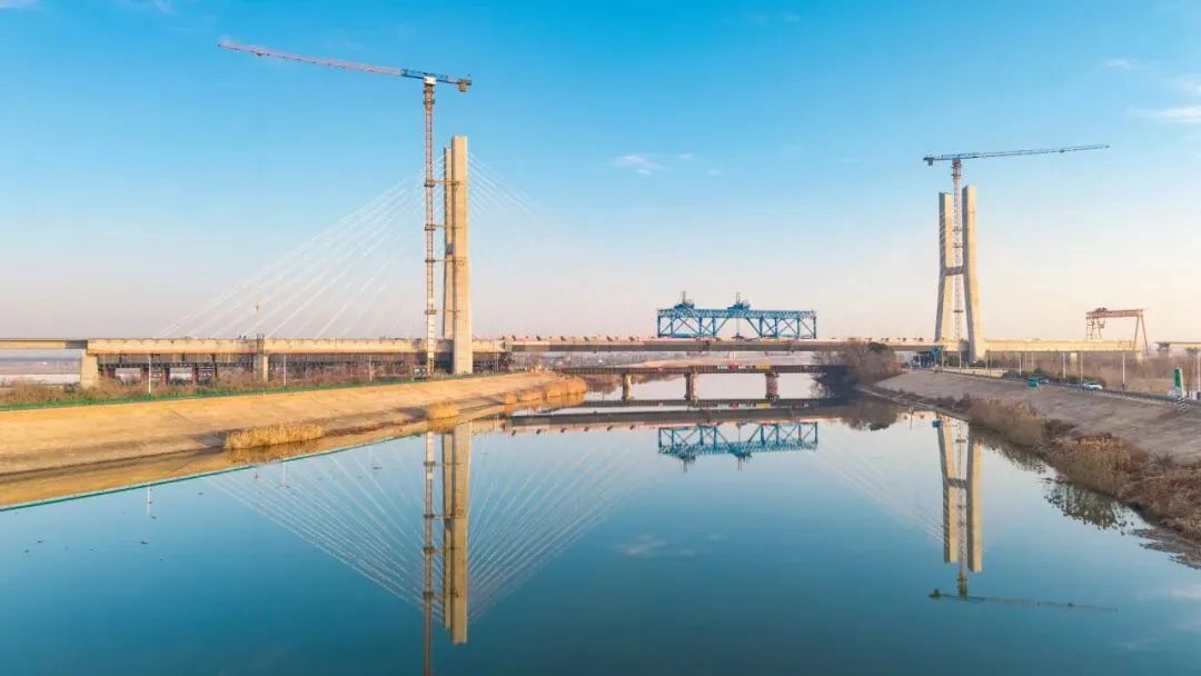 1月8日,沪宁合高铁控制性工程——南京特大桥跨滁河斜拉桥顺利合龙,标志着该斜拉桥主体工程全面完工,正式转入桥面系施工阶段。