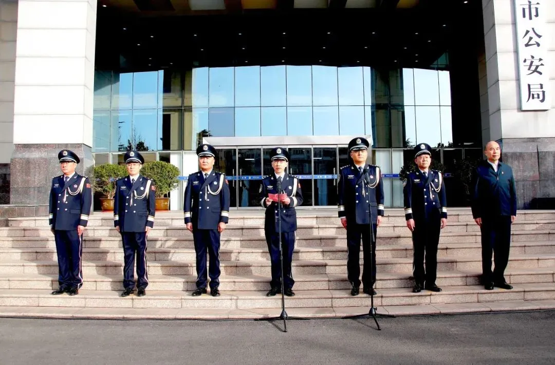市局直属各单位、机关各处(室)主要负责人和民警代表约100人参加仪式。