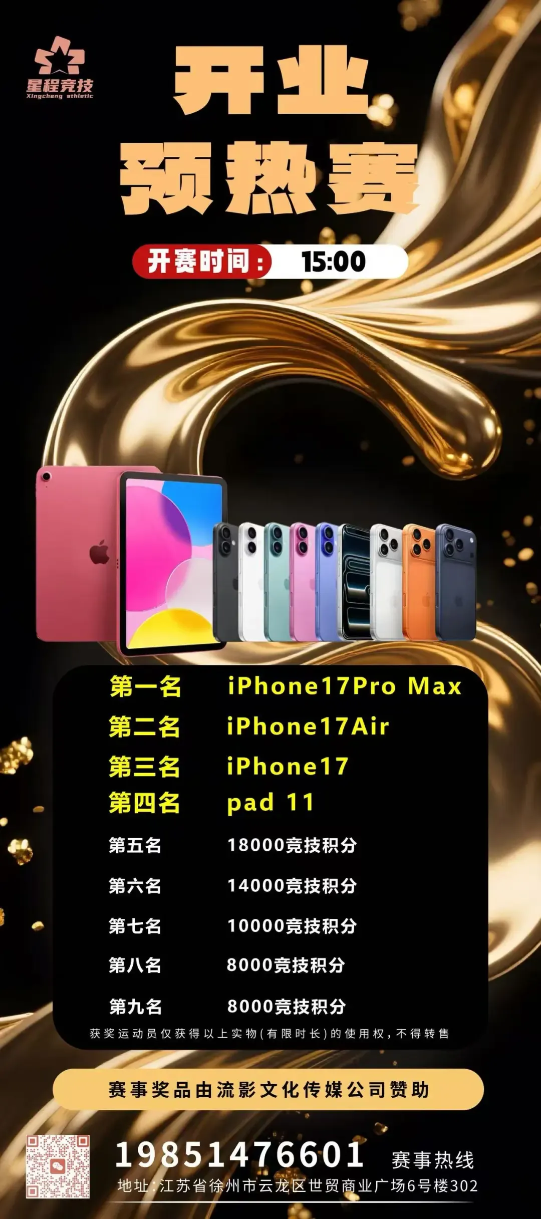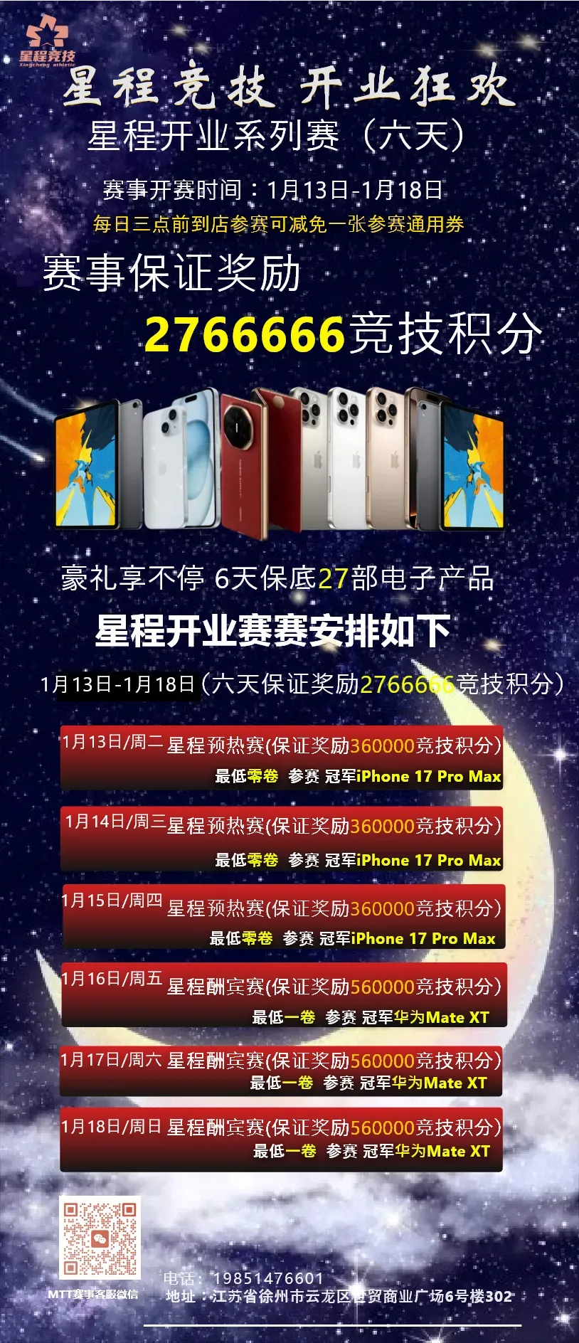 星程启幕燃彭城,赛场争锋赢豪礼!1月13日-18日,「星程开业系列赛」重磅来袭,赛事保证奖励 2,766,666 竞技积分,华为Mate XT、iPhone17系列 等豪华大奖等你来拿!
