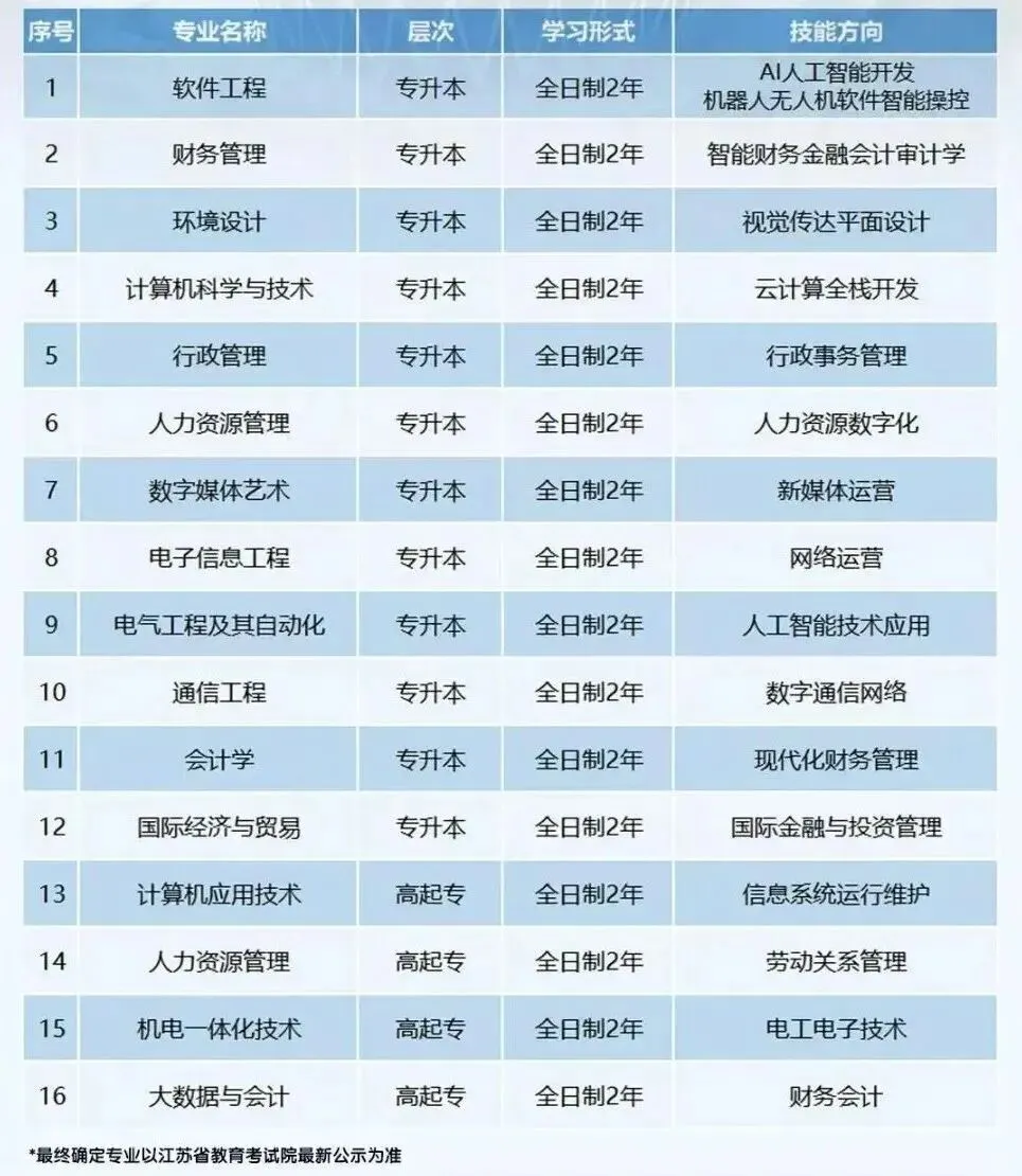 南信大专接本开设专业: