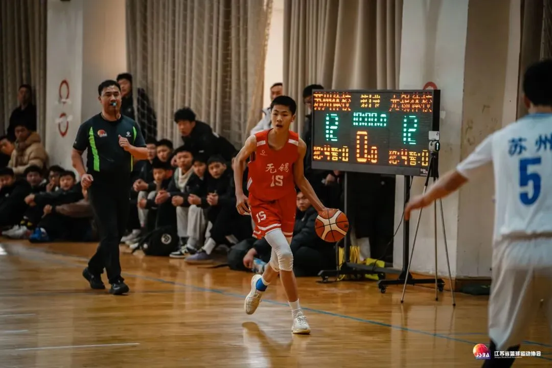 苏州体校坐镇主场迎战无锡体校,两队实力相当,比赛开始后苏州体校攻防转换做得更好,连续反击打成,无锡体校则是更多的依靠个人能力帮助球队紧咬比分。苏州体校依靠快攻得分,无锡体校则是耐心的组织阵地进攻,双方分差始终控制在10分左右。