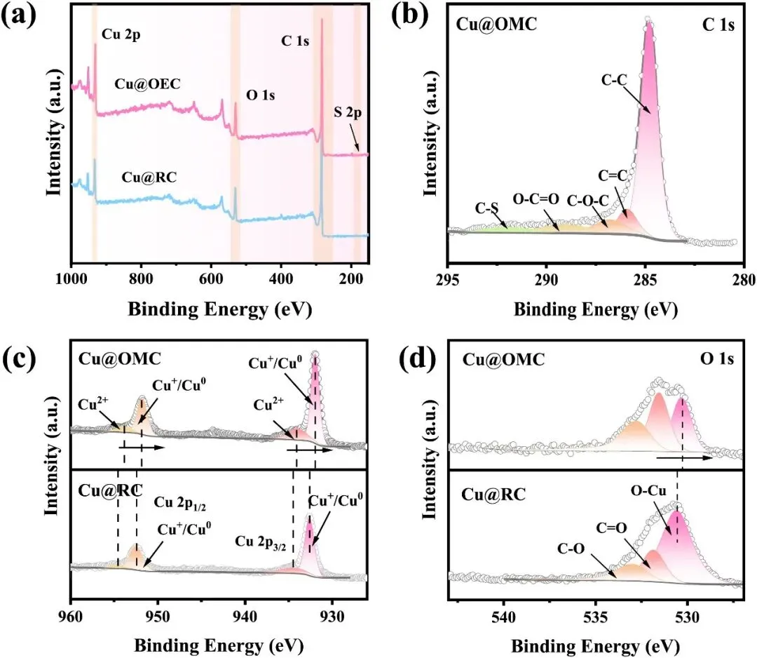 图5:Cu@OMC与Cu@RC的表面化学状态分析