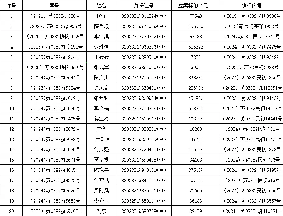 执行公告下列被执行人