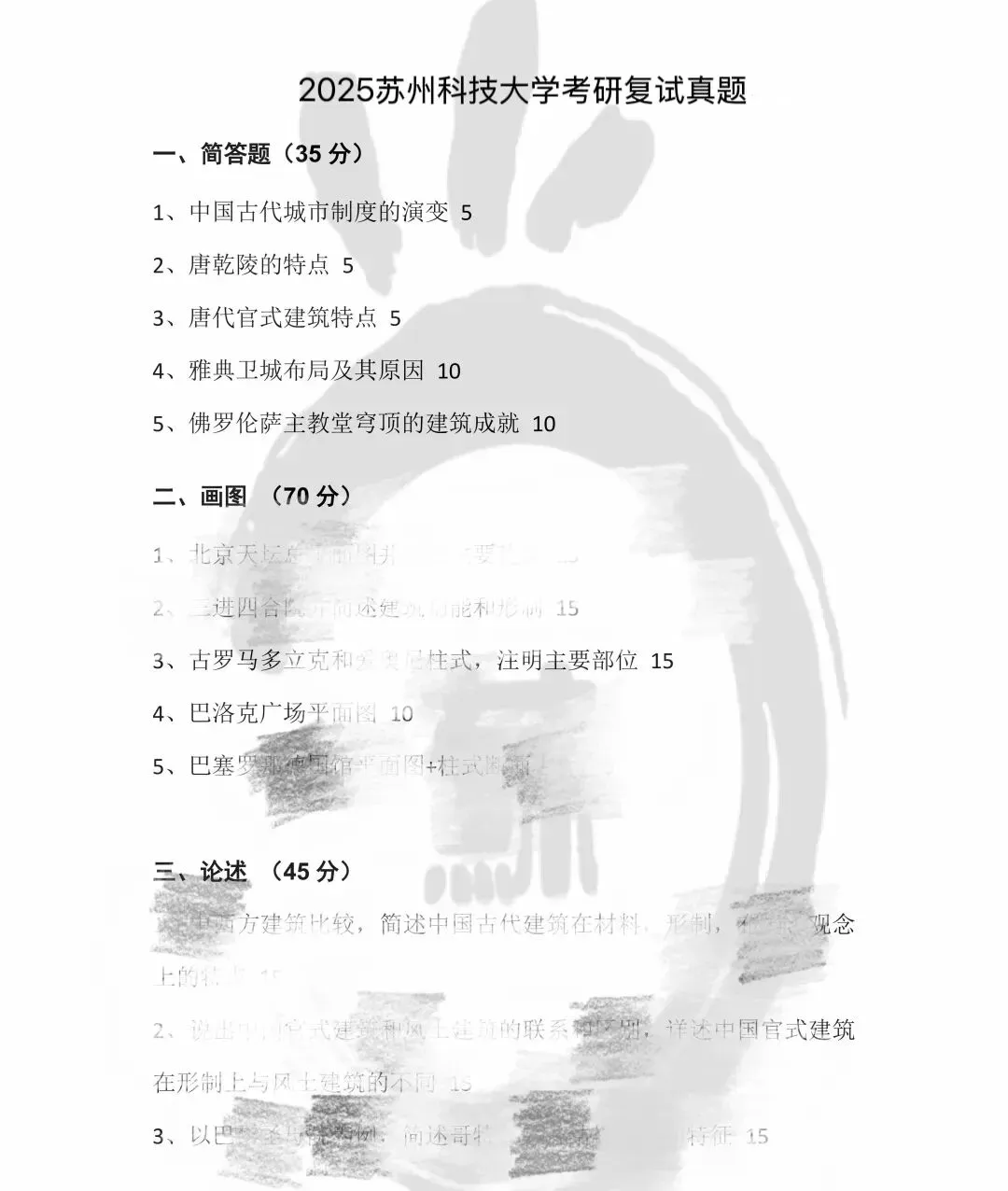 苏州科技大学建筑学院的专业课笔试有那些考试重点?
