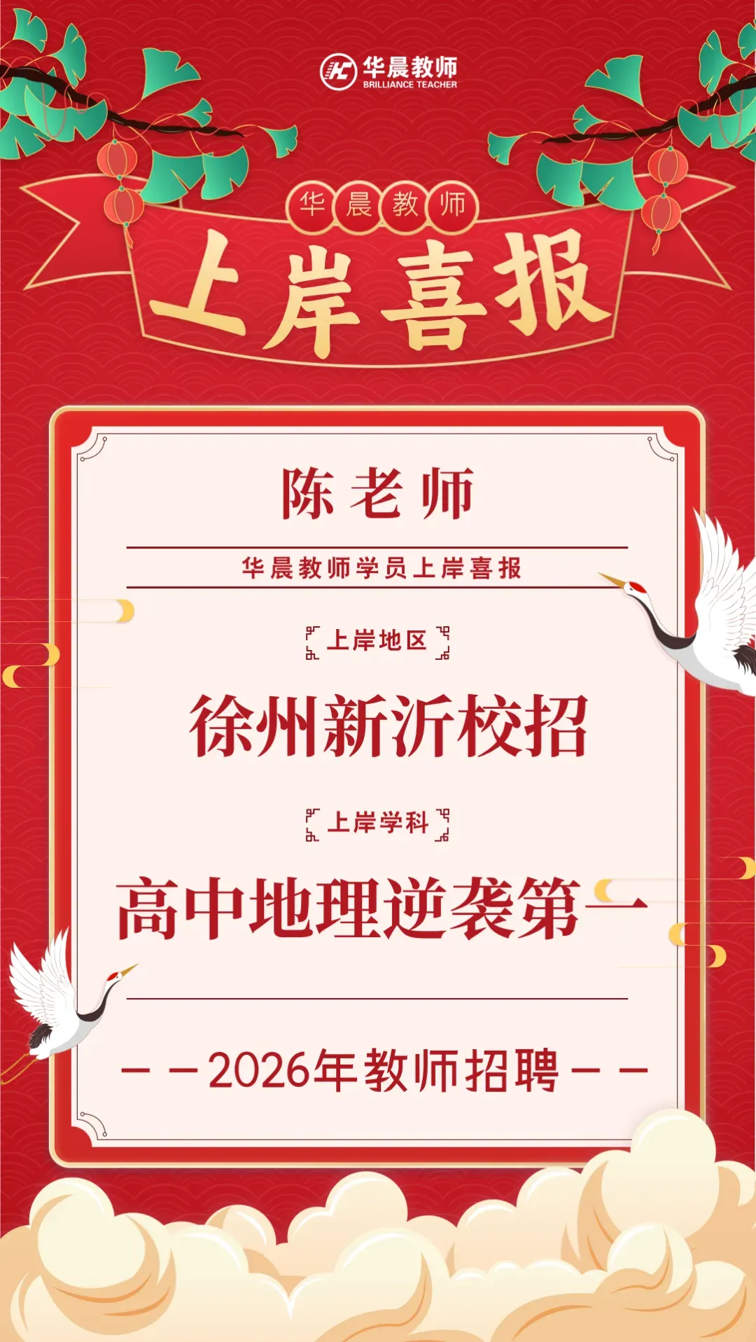 恭喜华晨高中地理学员新沂校招上岸!