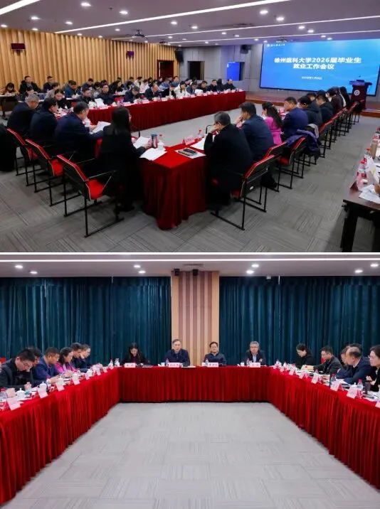 为深入贯彻落实党中央、国务院关于高校毕业生就业工作的决策部署,全力保障2026届毕业生更加充分、更高质量就业,1月6日,徐州医科大学在主校区图书馆会议室召开2026届毕业生就业工作会议。校领导祝木伟、曹君利、王媛、郭栋出席会议,学生工作部、教务处、研究生院等部门负责人,各学院负责人,徐州市卫健委、相关培养基地、联合培养院校、相关企业的负责人共70余人参加会议。党委常委、副校长王媛主持会议。