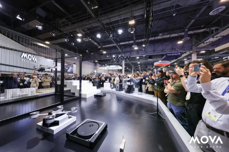 扫地机居然能飞?CES现场,吴中新锐企业MOVA展示的MOVA Pilot 70飞行模组将扫地机器人平稳吊起、精准空降至二楼或屋顶平台,实现“跨楼层作业”,引发众多观众惊叹。值得一提的是,MOVA成立不到两年即完成了从清洁机器人到户外、个护等六大场景的生态构建。此次参展的19大场景35款新品,更是斩获8项CES创新奖项,展现出吴中企业的快速创新与生态布局能力。