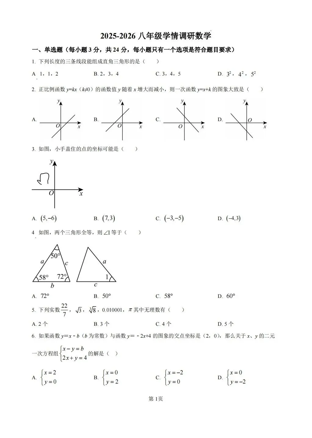 2026年1月徐州市东苑中学2025-2026学年八年级上学期月考数学试题