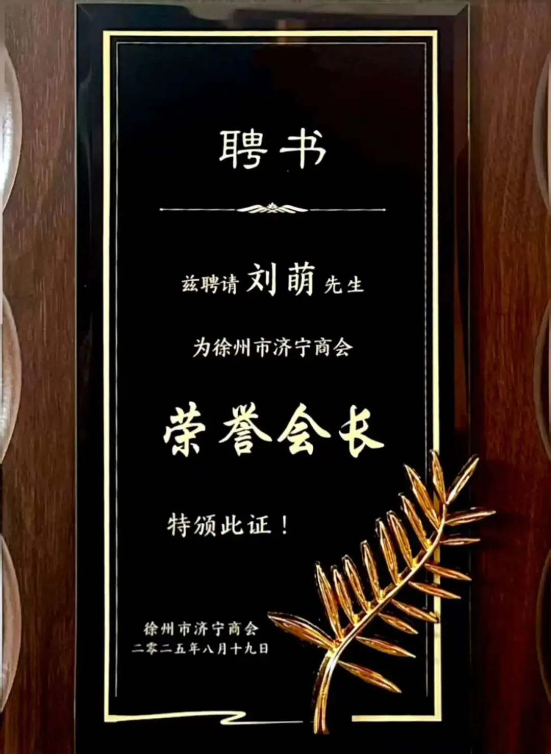经徐州市济宁商会理事会审议通过,大会正式聘请长江国际商会会长刘萌担任荣誉会长。