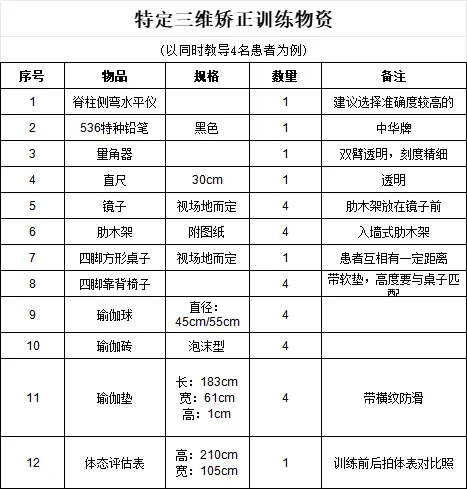 3、开展脊柱侧弯项目的物资汇总表-100元