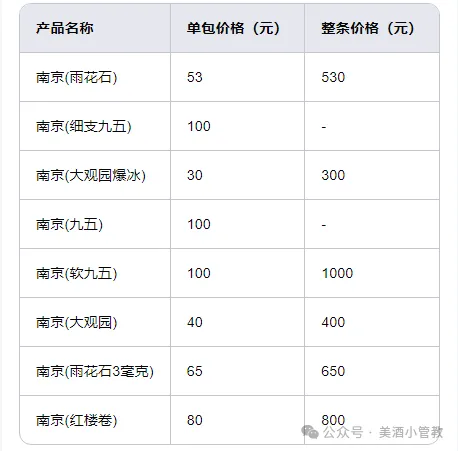南京香烟价格表和图片,2024南京香烟价目表一览