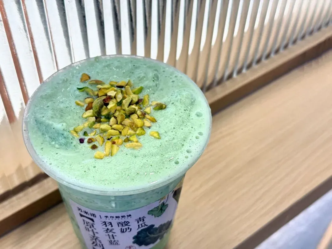 入口是羽衣甘蓝独有的清冽香气,裹挟着酸奶的醇厚丝滑,沙冰质地在舌尖悄然化开,紧接着糯米香与酸奶香交织在一起,口感丰富且饱腹感十足,很适合代餐。