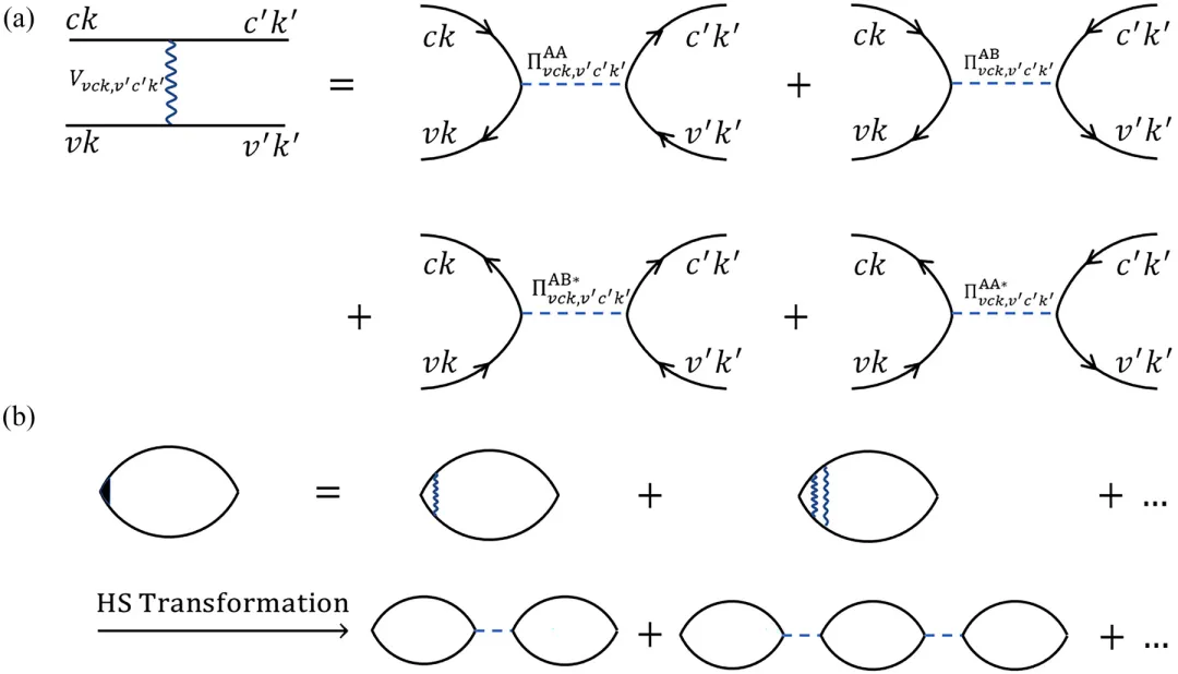 基于密度泛函理论和多体微扰论的第一性原理计算方法已被广泛用于电子结构计算,然而对称性破缺体系激发态目前仍没有有效的计算方法,其中激子绝缘体(EI)是一种由电子-空穴对(e-h pair)形成的长程有序态,它自发破缺了体系的U(1)对称性(对应激子数目守恒),或者某个晶格对称性。凝聚体的集体激发对应于序参量的涨落,这些涨落会贡献光学响应并可作为实验特征。对这些模式的理论分析通常基于模型哈密顿量,而实际材料计算则需要一种能够与第一性原理计算软件自然兼容的计算方法。