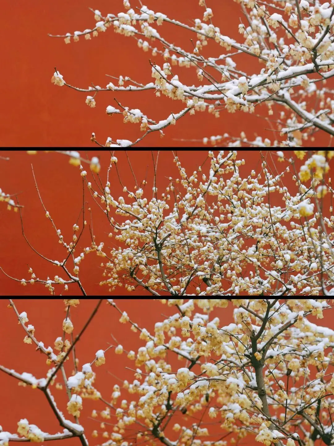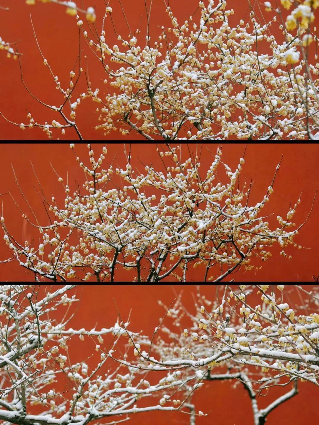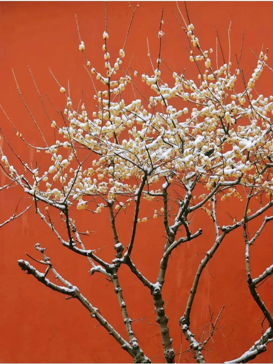 红墙覆雪,老枝横斜,