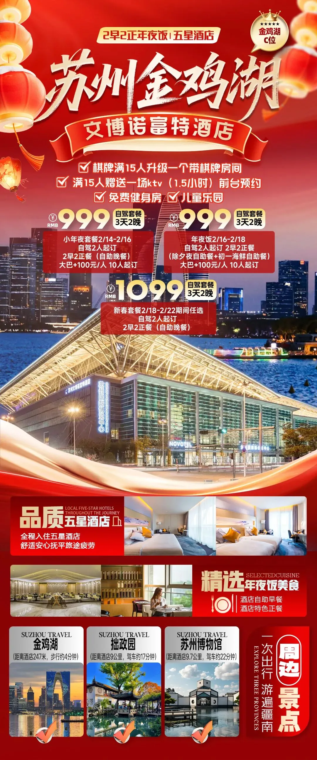 3. 毗邻多个热门景点:距金鸡湖景区仅约300米,距苏州之眼摩天轮仅1.6公里。