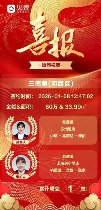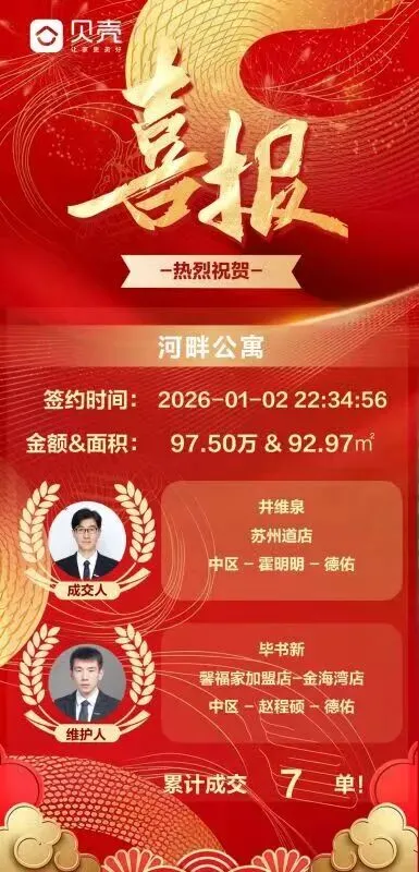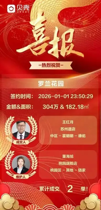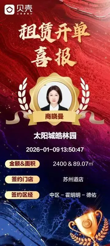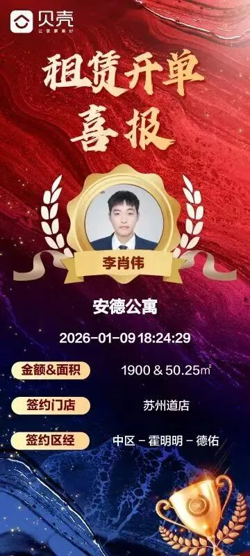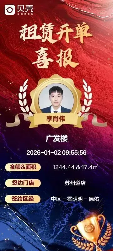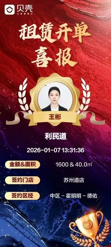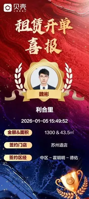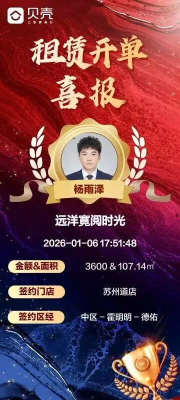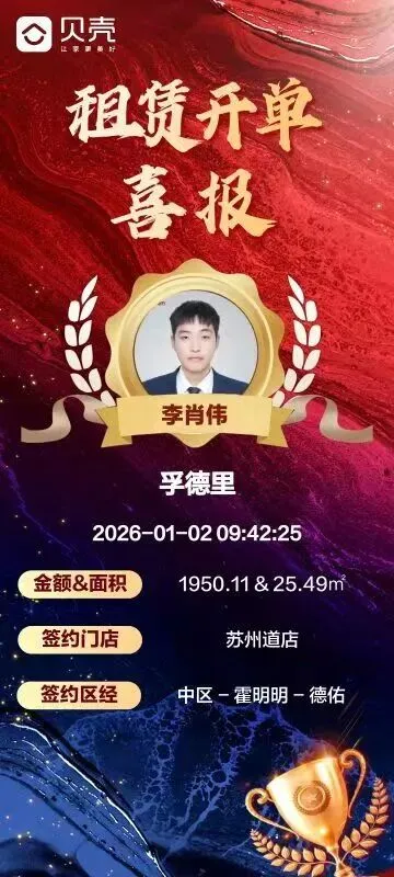2026年开年第一周,德佑苏州道店捷报频传,实现“开门红”:买卖业务、租赁业务、省心租业务全面开单!三线并举,齐头并进,以强劲势头开启了全新的征程,为全年业绩增长奠定了坚实基础。