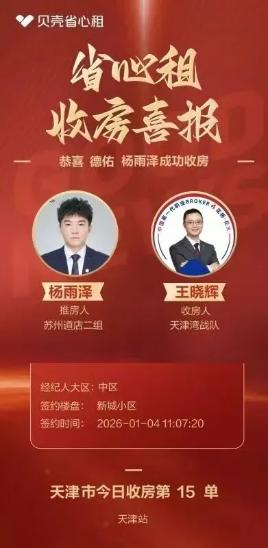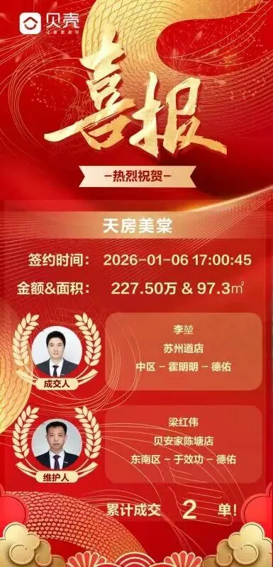 开年首单买卖业务,经纪人凭借专业的市场分析、精准的房源匹配和细致的全流程服务,成功助力一个家庭完成了改善型置业,实现了从“住有所居”到“住有优居”的跨越。这不仅仅是一单交易,更是一份信任的托付,一个美好新生活的开启。