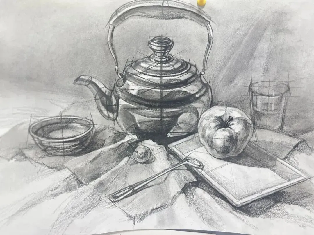 理解和剖析物体的结构,不仅要求把物体自身的结构画出来,更需要将物体与物体之间的前后关系、虚实关系都表达出来,不需要太多的明暗变化、光影变化,为了理解更表达物体自身的本质。
