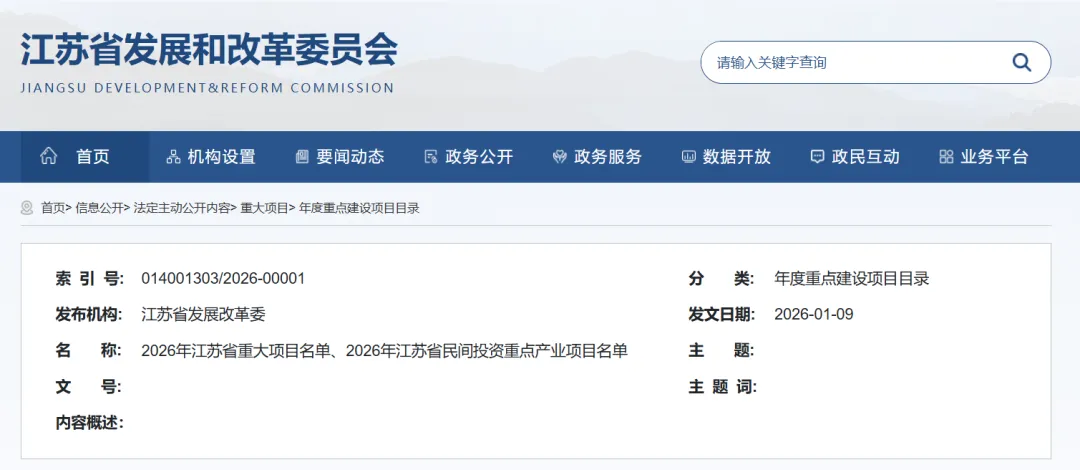 2026年江苏省重大项目清单刚刚公布,