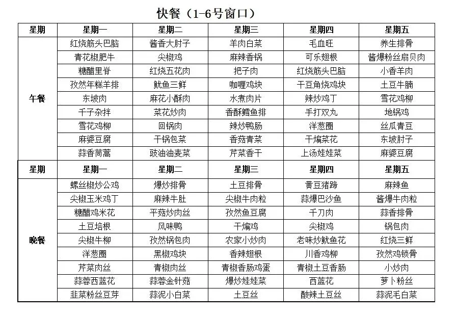 徐州市第二中学第20周健康食谱