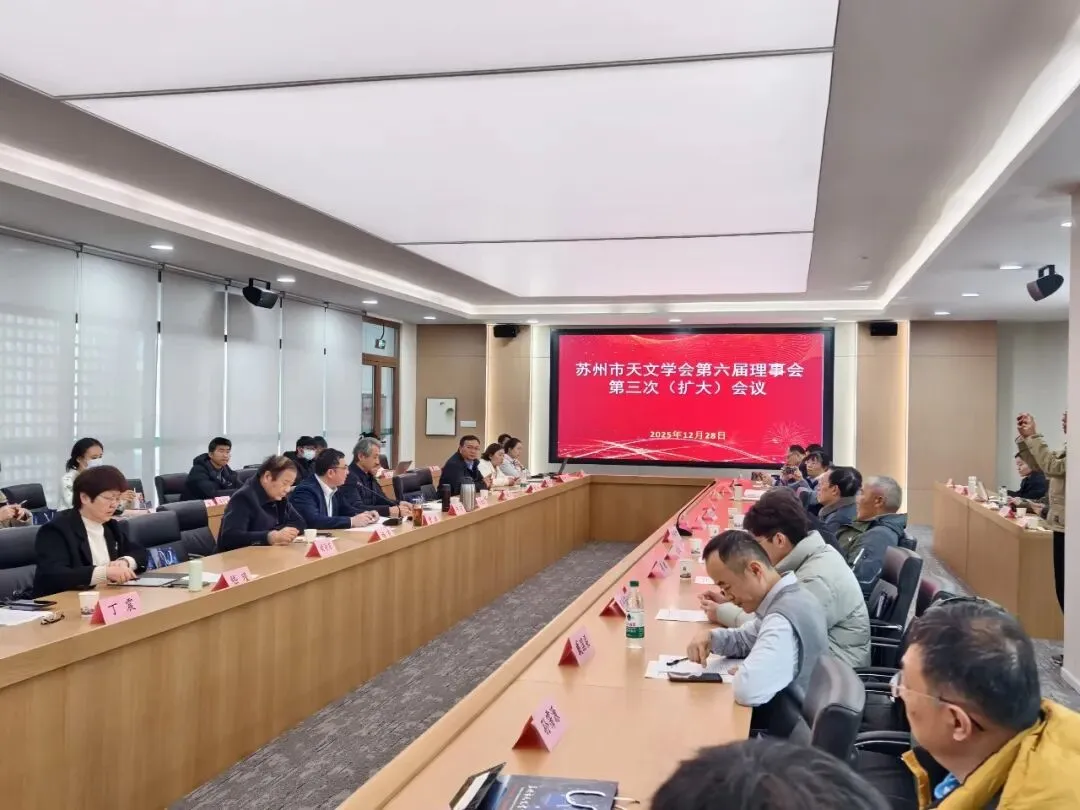 2025年12月28日,苏州市天文学会第六届理事会第三次(扩大)会议、2025年度会员代表大会暨学术年会在江苏省苏州中学东校区隆重召开。学会理事、监事及会员代表80人齐聚一堂,共同回顾2025年学会天文科普事业发展成果,擘画2026年发展蓝图。