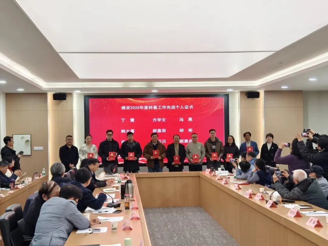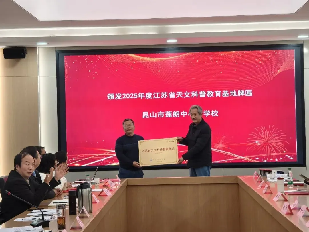 大会对2025年度为天文科普事业作出突出贡献的先进集体与个人进行了隆重表彰。受江苏省天文学会委托,向昆山市蓬朗中心小学校颁发“江苏省天文科普教育基地”牌匾;丁震同志荣获“2025年度长三角优秀科技志愿者”称号。