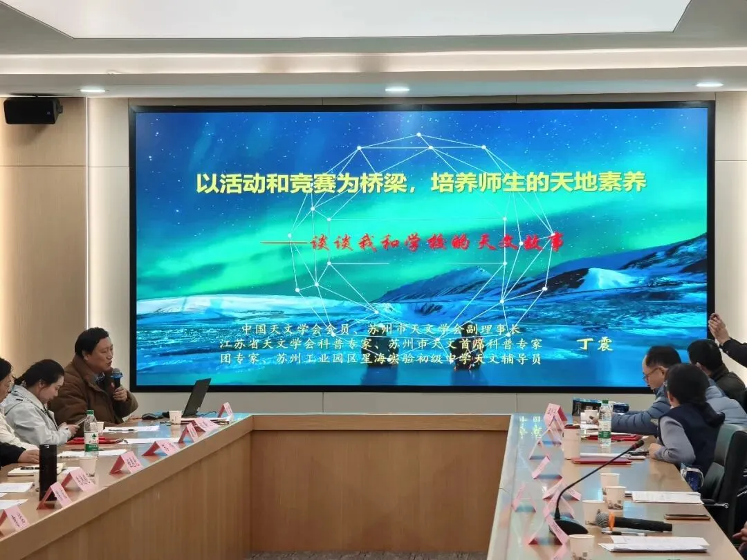 在接下来的学术交流环节,苏州市吴江区运河实验初级中学、苏州工业园区星海实验初级中学、昆山市蓬朗中心小学校、苏州振旺光电有限公司等8家单位的代表,围绕天文科普课程开发、校园天文教育实践、天文观测技术应用等主题展开深入分享,交流经验、碰撞思想,为推动苏州天文科普事业提质增效提供了多元思路。