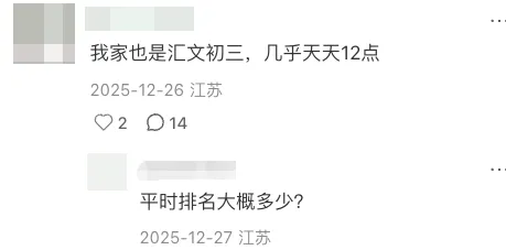 少数家长对同班孩子完成作业时间差异大感到困惑,不理解为何有的孩子能 11点多睡,自家孩子却要到12点甚至更迟。部分学区内的小学生家长因听闻这些情况对孩子直升汇文初中产生担忧,但也有家长肯定公办汇文抓得紧,认为学校不错 。