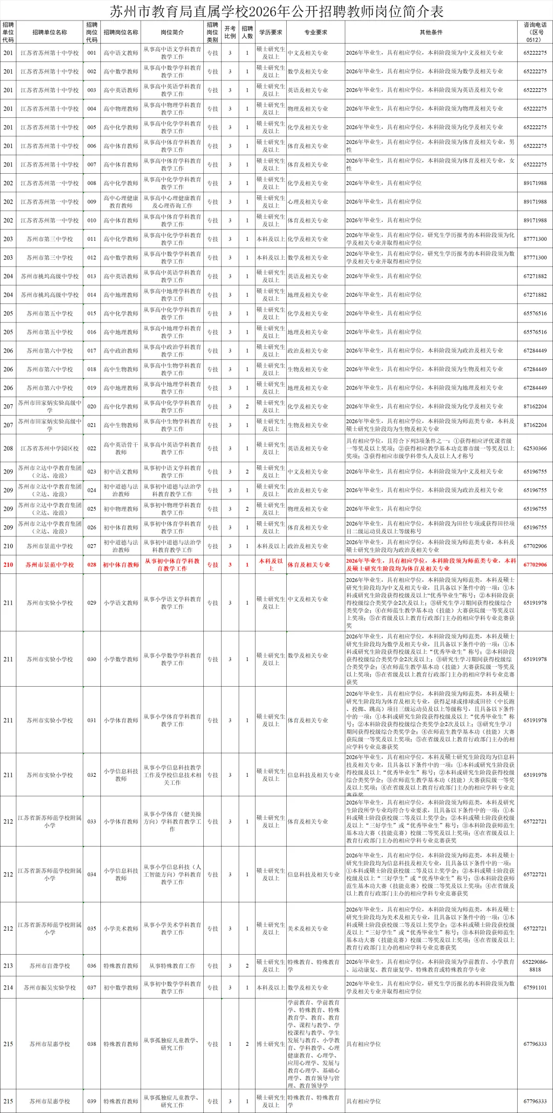 附件:苏州市教育局直属学校2026年公开招聘教师岗位简介表