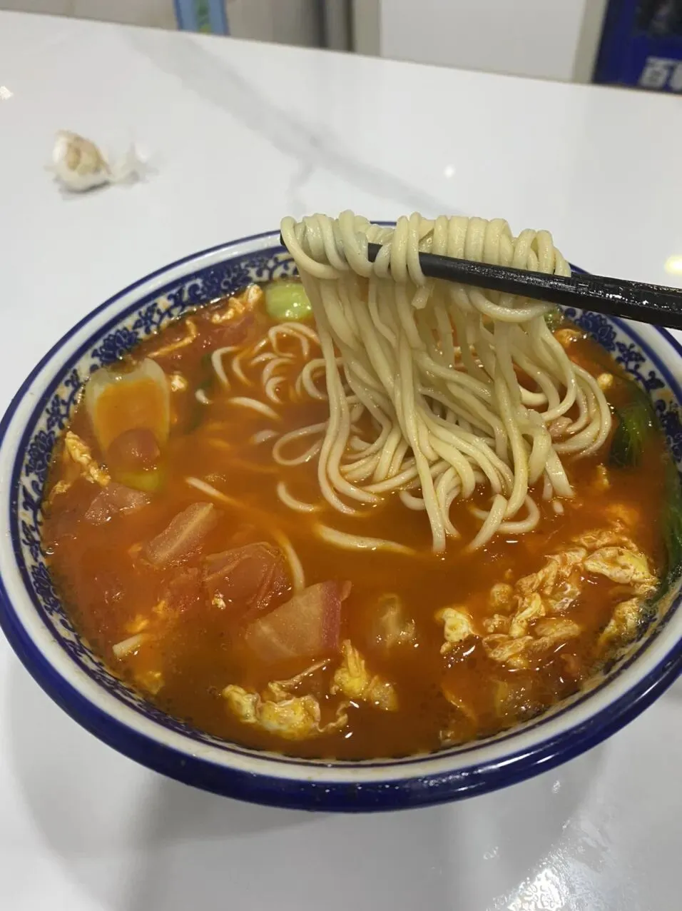 回来,在小区附近下车走到拉面店,“老板,西红柿鸡蛋面”,我转身坐下,等一碗美味佳肴。