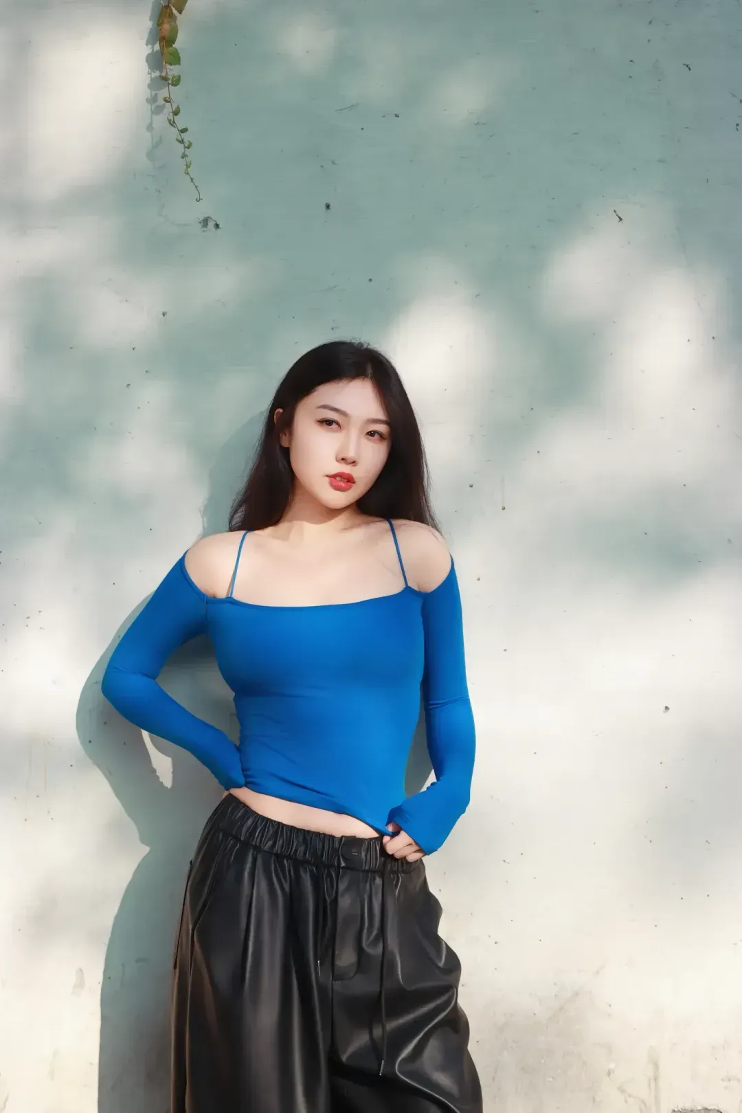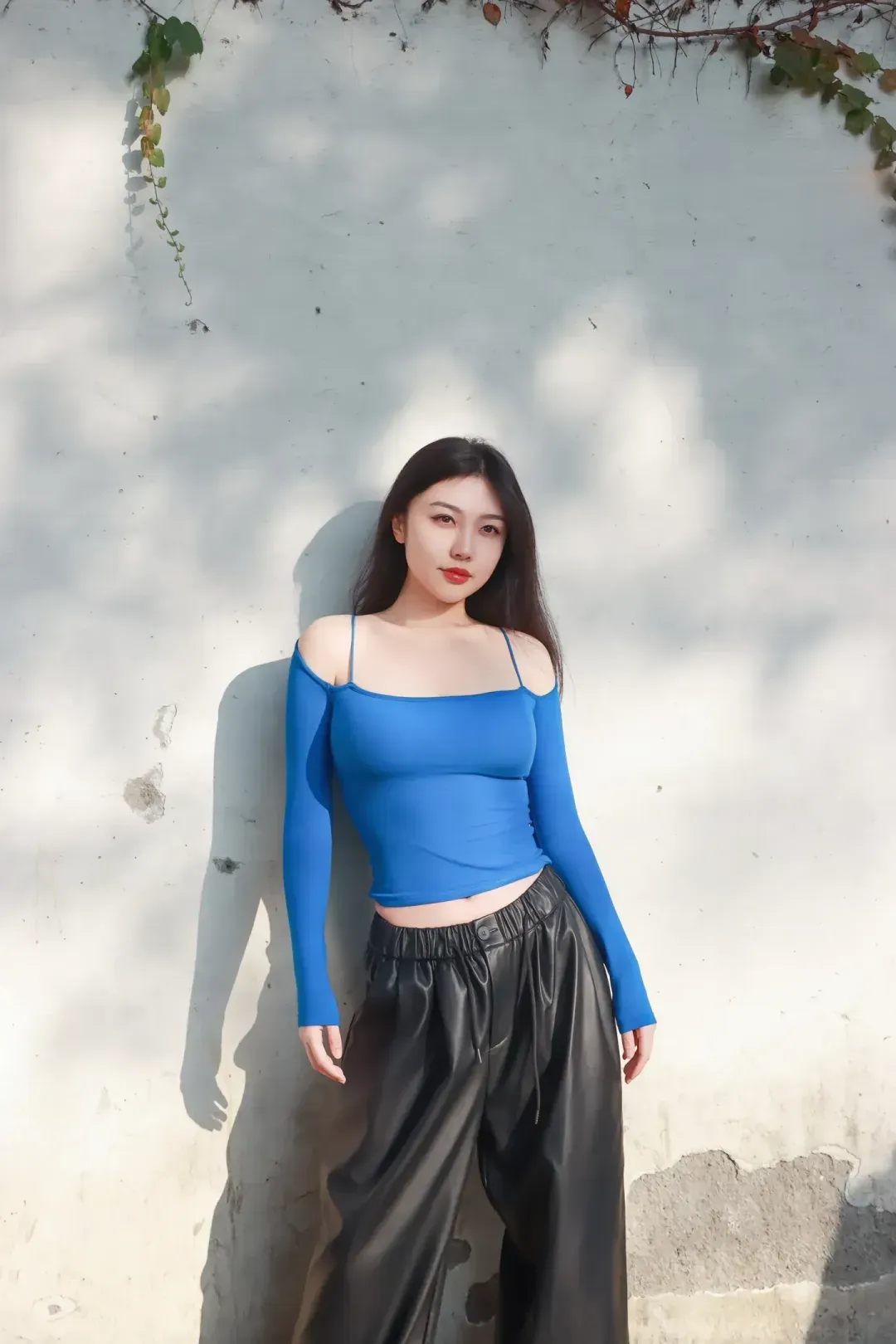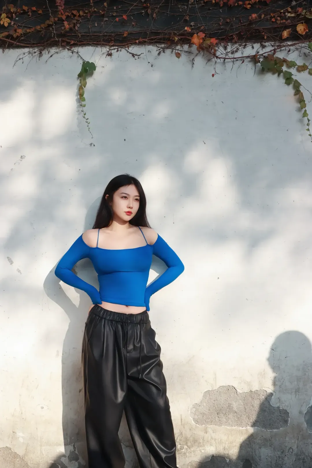 :交叉腿坐老墙根,低头翻书或轻抚砖纹,避免直视镜头