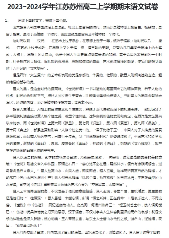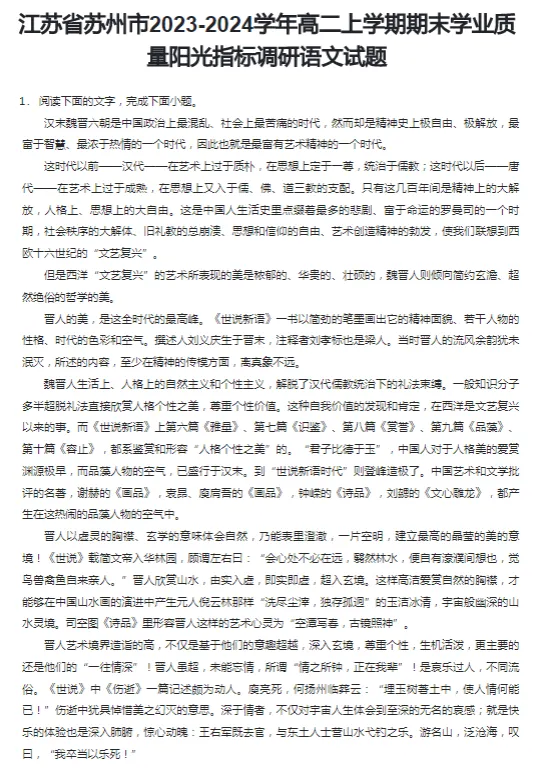 2017-2024学年苏州各区高二上学期期末语文真题及答案解析