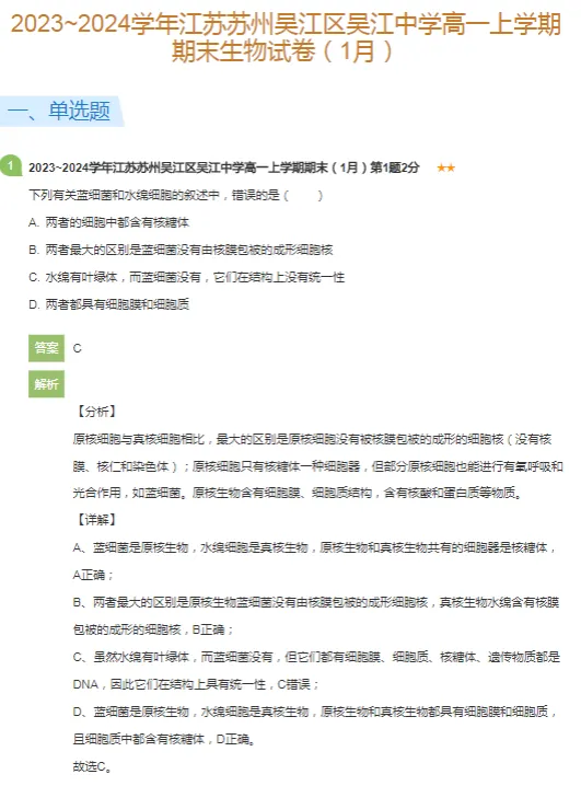 2015-2024学年苏州各区高一上学期期末化学真题及答案解析