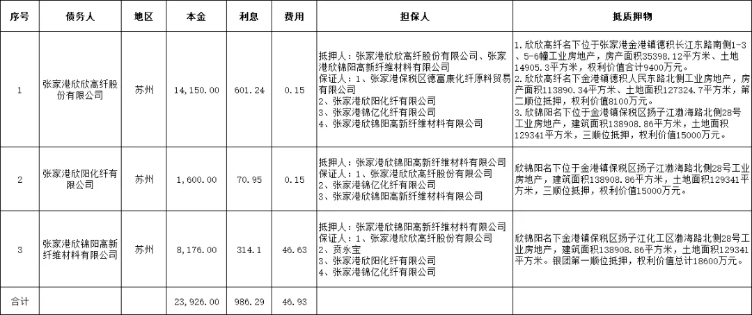 注:1.本公告清单仅列示截止2025年9月20日的贷款本金余额,借款人和担保人应支付给中国中信金融资产管理股份有限公司江苏省分公司的利息按借款合同、担保合同及中国人民银行的有关规定计算。已经进入诉讼程序的,并已由贷款行垫付的应由借款人及担保人负担的诉讼费以有关法律文书确定金额为准。