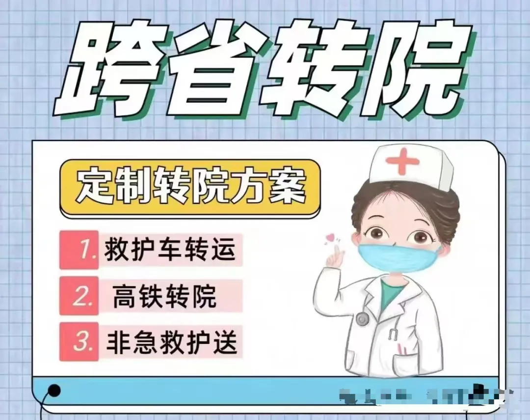 长途转运:跨城/跨省/全国范围,规划最优高速路线,配备双司机轮流驾驶,24小时不间断护送,途中可协调就近医院停靠补给