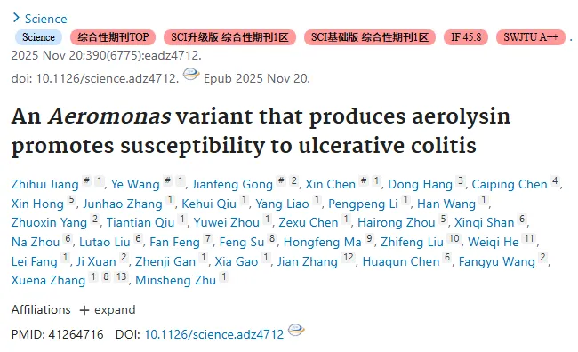 IF45.8!南京大学医学院“国自然”登顶《Science》:首次揭示溃疡性结肠炎全新机制!