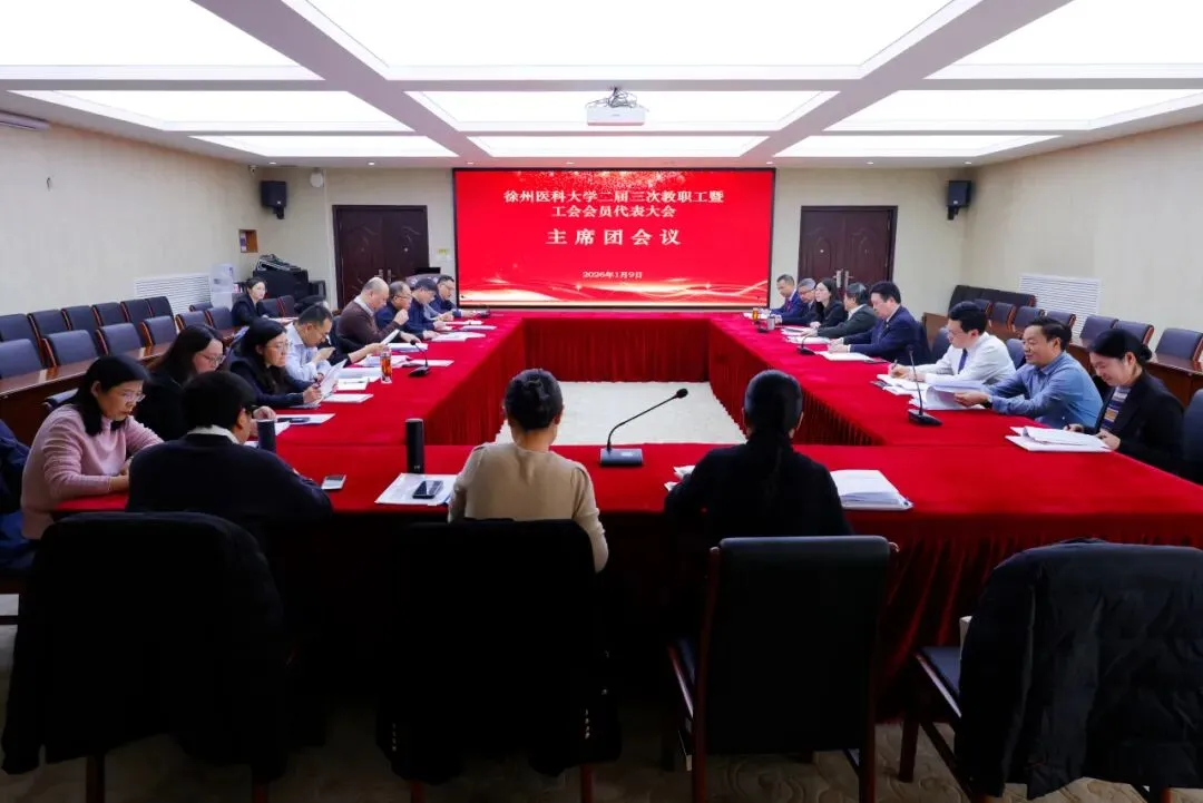 1月9日,徐州医科大学二届三次教职工暨工会会员代表大会在主校区学术报告厅胜利召开。校党委副书记、副校长、第二届教代会执委会主任徐海波主持大会,206位正式代表齐聚一堂,共同为学校改革发展建言献策,擘画“十五五”崭新蓝图。