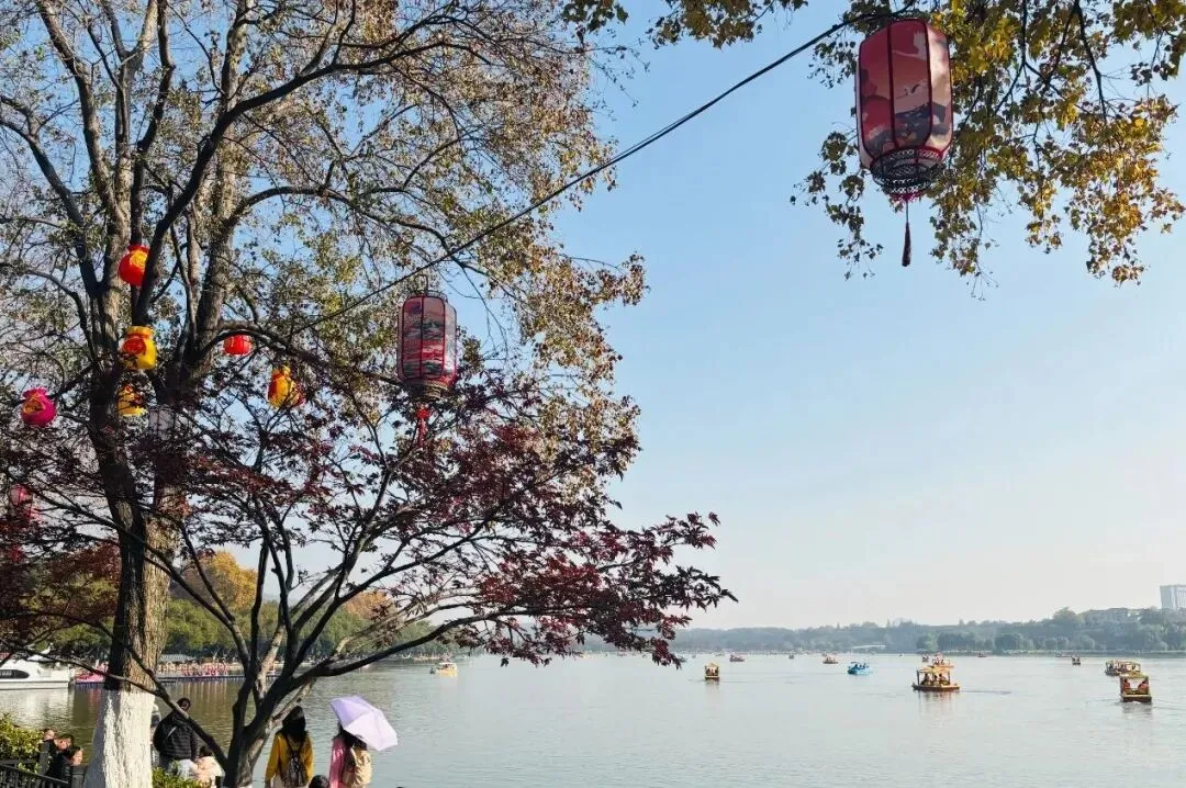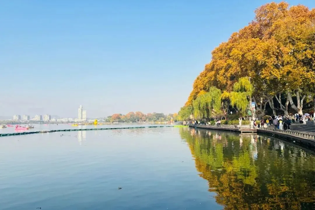 我们一路走到鸡鸣寺,风景美丽,一阵宁静的感觉。这个时候的南京居然刚有银杏落叶,渲染得更加舒适。