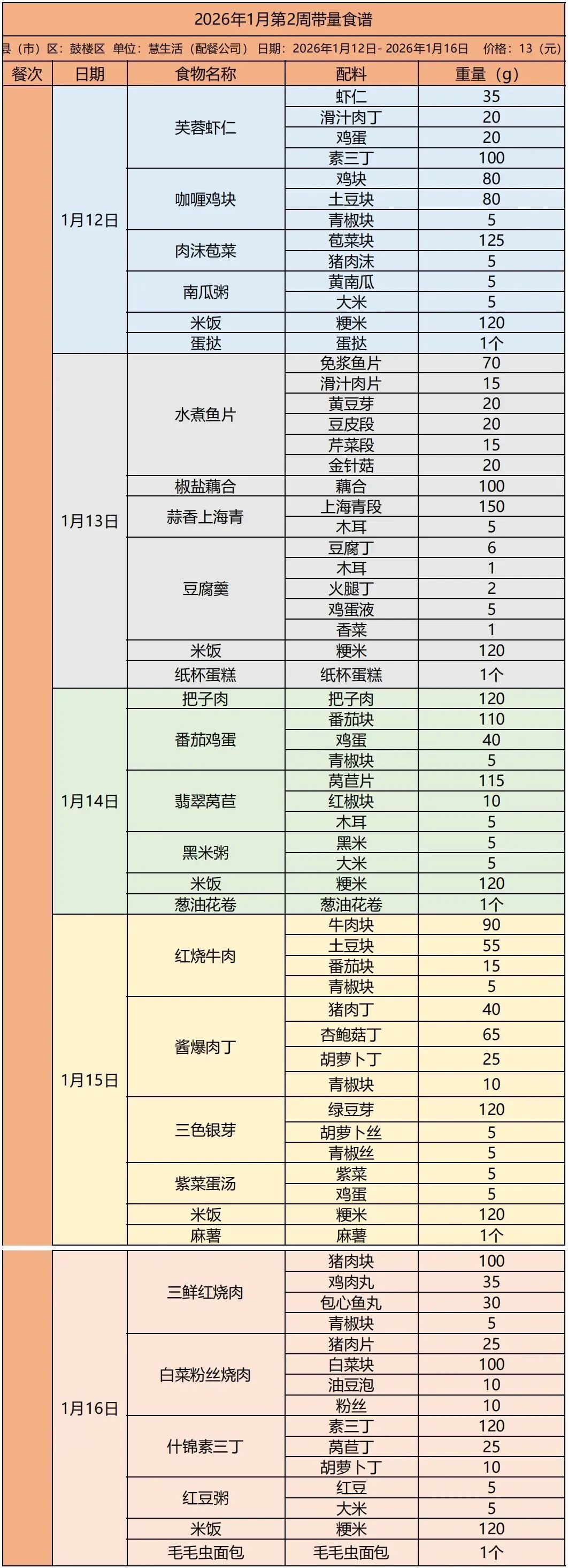 徐州市鼓楼区特殊教育中心一周健康食谱(2025年1月12日-1月16日
