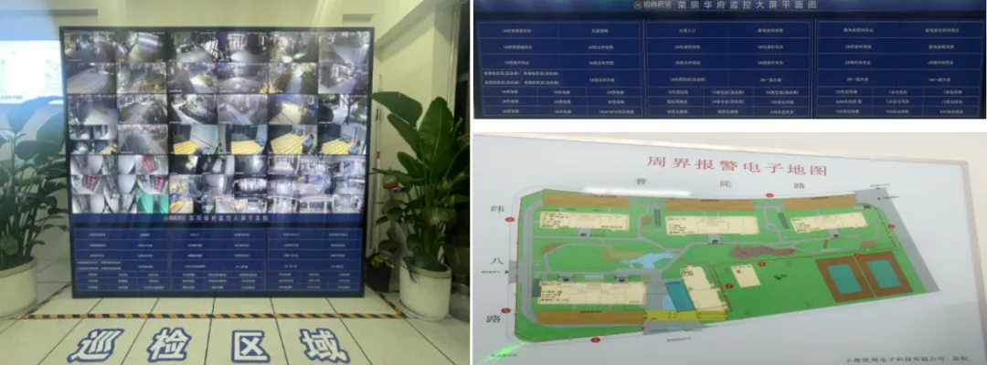 • 精细化管理举措:对桌面实施5S 定位管理,合理规划中控画面分区并配置电视墙分区,将周界报警电子地图上墙展示。电视墙画面实现园区全方位无死角覆盖,重点区域持续、不遗漏监管。中控室人员操作效率显著提升,调取监控的时间从原本的 5 秒缩短至 2 秒,面对应急情况能更快响应,处置闭环更加高效。