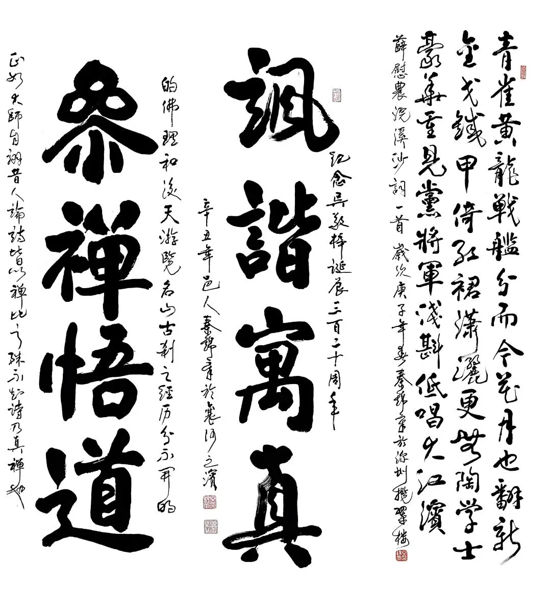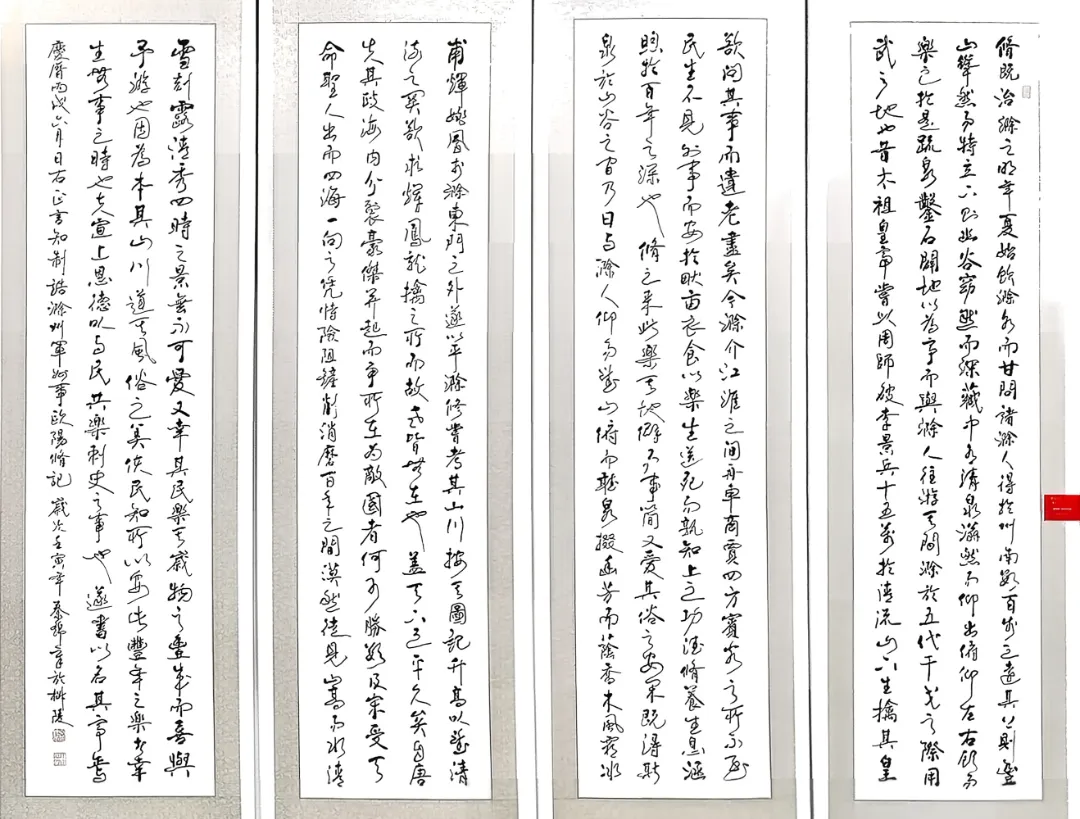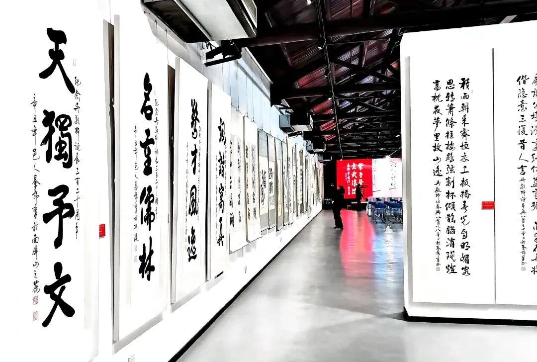 随后,他重点介绍了本次展览的构思。展览不仅呈现其个人早期作品,更核心的是以书法形式致敬三位与南京结缘的全椒先贤:明代高僧憨山大师、文学巨匠吴敬梓、晚清名士薛时雨。他通过书写他们的诗联,旨在凸显全椒与南京两地跨越时空的文化血脉联系,使本次展览超乎个人展示,成为一次文脉寻根与传承的实践。