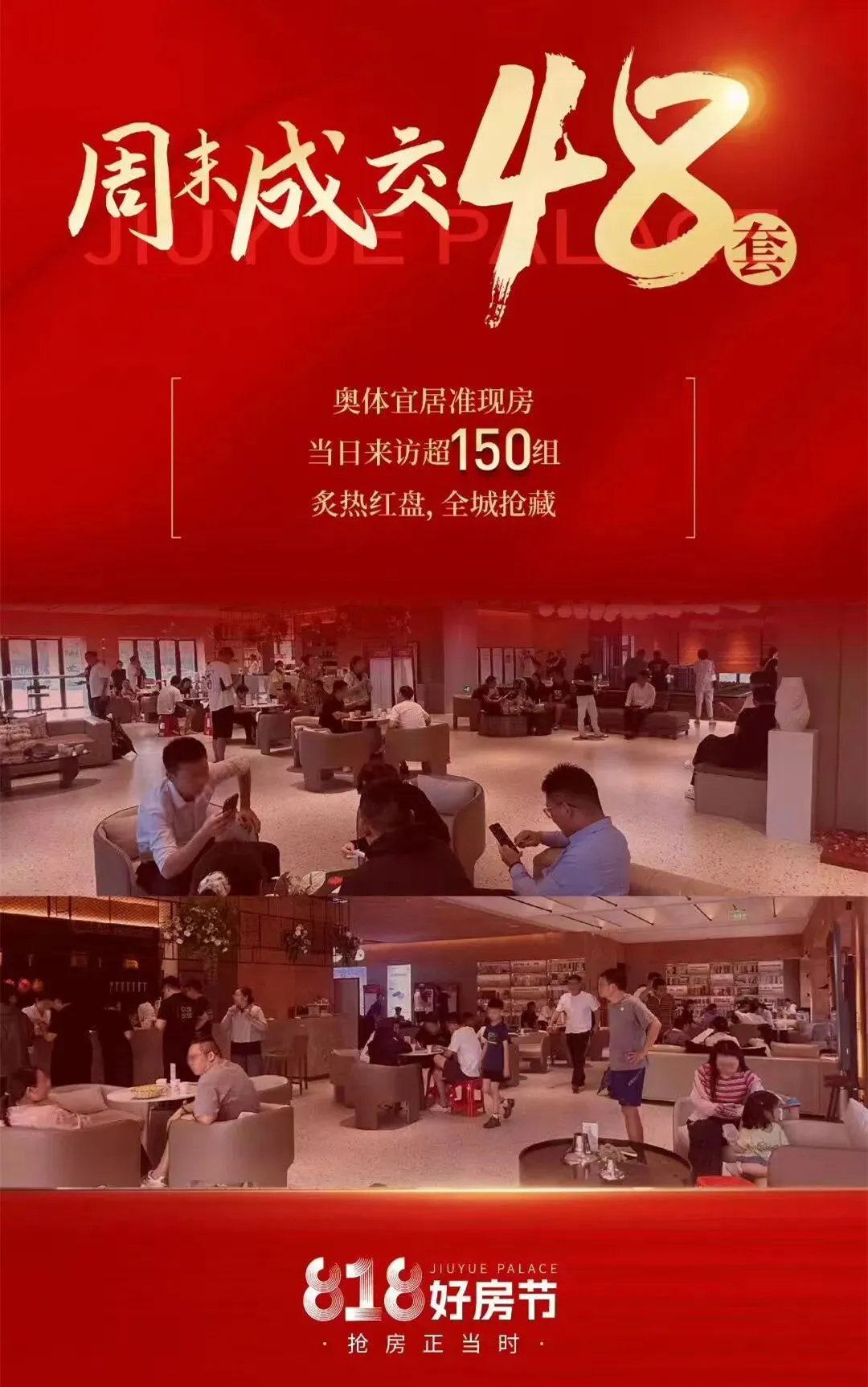 近期朋友圈中介也都在疯狂推这个项目,转发的海报显示:周末成交48套,当日来访超150组。