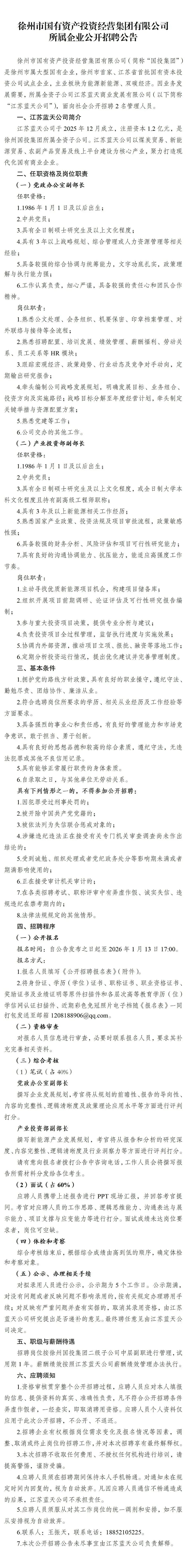 >徐州市国有资产投资经营集团有限公司所属企业公开招聘公告!