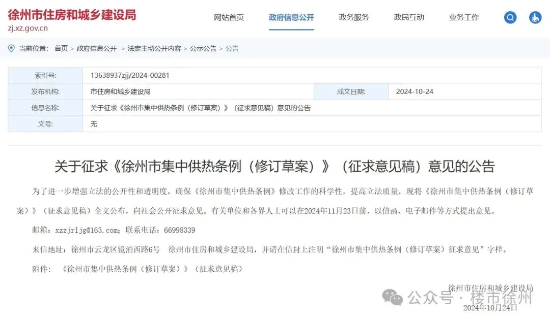 近日,徐州市住建局发布关于征求《徐州市集中供热条例(修订草案)》(征求意见稿)意见。