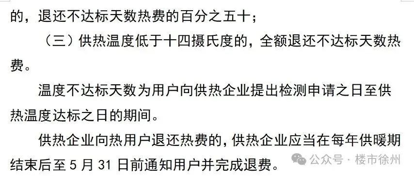 (三)供热温度低于十四摄氏度的,全额退还不达标天数热费。