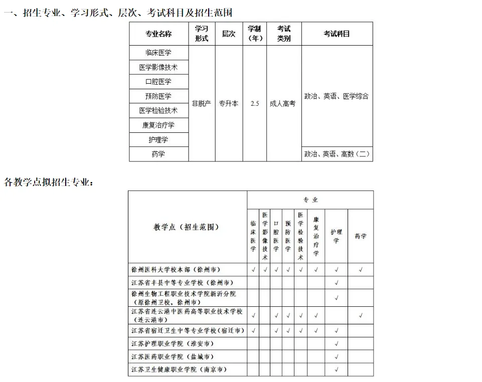 >徐州医科大学2026年成人高等教育招生简章