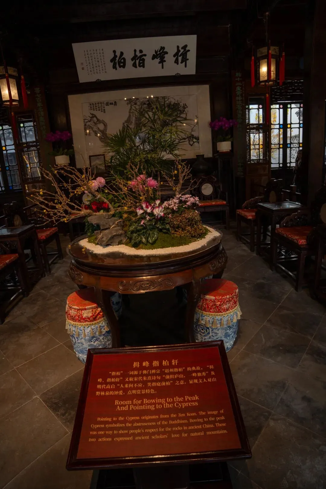 寒冬腊月,当万物凋零,仍然有一种花凌寒而独立,这种 “不与百花争春” 的特质,恰好对应了文人推崇的清高自持、坚守本心的品格备受文人的推崇,苏州园林的主人多为文人雅士、辞官归隐的官员,他们推崇 “雅淡、高洁” 的品格。腊梅 “凌寒独放、暗香浮动” 的特质,恰好是文人不趋炎附势、坚守本心的精神写照。因此,在苏州园林里,冬天的风景往往就是赏梅。这个周末去了趟苏州,逛了好几个园林,梅花开的有狮子林、网师园、沧浪亭、艺圃,这次给大家介绍的是狮子林。在这个寒冬腊月,狮子林正好在举办梅花展,梅花的品种多,既有盆栽的梅花,又有自然开放的梅花,还有各色各样的其他花卉,可谓是一饱眼福。在大门口就有梅花展的介绍,注意时间是一直到26年的3月5日。狮子林位于苏州古城东北隅,是苏州四大名园之一,也是世界文化遗产苏州古典园林的重要组成部分。它始建于元代至正二年(1342 年),由元代高僧天如禅师维则的弟子们为纪念其师而创建。天如禅师曾居住在天目山狮子岩,因此取狮子林之名,寓意佛法如狮子般威猛,能降伏一切烦恼。穿过大门,进入第一个大厅,云林逸韵厅,这里过去是贝家祠堂,是贝家供奉、祭祀祖宗和族人聚会的地方。仔细看大厅的上方,有几个小人,很有意思,很容易被忽略掉。“云林” 指的是元代画家倪瓒,他号云林子。“逸韵” 则指其画作所具有的超众脱俗、潇洒风流的韵味。在梅花展期间,中间放了个大盆在,梅花是主角。大厅两旁都是梅花小盆栽。接下来,我们来到狮子林的主体建筑 —— 燕誉堂。“燕誉” 二字出自《诗经・小雅・鹿鸣》,意为美好声誉。燕誉堂是狮子林的正厅,面阔五间,进深三间,歇山顶,梁枋上施彩绘,华丽精美。在燕誉堂殿内的窗花正好可以欣赏到窗外刚刚萌芽的梅花。预计接下来一周会盛开,目前只开放了几个花骨朵。我们来到狮子林中最为著名的建筑之一 —— 揖峰指柏轩。揖峰意为向山峰行礼,指柏则源于园中一株古柏。轩名取自元代高僧天如禅师的诗句:“揖峰指柏,坐看云起。” 它是两层楼阁式建筑,轩前有一宽敞的平台,可俯瞰园景。狮子林最有特点的地方在他的假山,园内不大的水池旁有假山圈出来一个迷宫,假山底下、里面、上面都是路,地方不大,却让人感觉怎么走也走不出来的感觉。假山以太湖石堆砌而成,有瘦、透、漏、皱四大特点,设计精巧,布局合理,分为东、西、南、北四个区域,各具特色,被誉为 “假山王国”。乾隆皇帝曾六次来到狮子林,并认为假山相当有趣,题写了“真趣” 二字。在园子里西北角有一座两层小楼,这次发现了最美的花窗和光影。离开假山的园子,准备出去的时候,发现了一颗开放了3成的梅花树。这里有三扇窗户,无论从哪扇窗户看过去都是一个美丽的窗景。再次回到出口的大厅,梅花展还在继续,展台的梅花比自然开放的梅花好看,但是没有自然开放梅花的香味那么浓。狮子林九只狮子的石头指的是九狮峰,它是狮子林众多湖石峰的代表之一。据说有福气的人能数到其中9个狮子,敢问你找到了吗?今年是个暖冬,气候比较高,所以梅花开的也比较晚,预计这个周末1月17号是最好的观赏日。希望大家在狮子林能尽情欣赏这独特的园林美景,感受江南园林的魅力。个人尤其喜欢园林的光影效果。