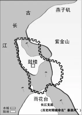(图10.东吴定都南京时期,依顺地貌河流构筑城市示意图。)