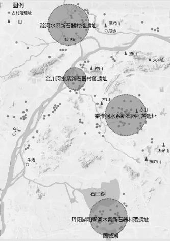 (图6.新石器时期南京古村落4个区域分布示意图)