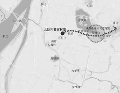 自鼓楼高岗地向东延伸,有古平岗、鸡笼山、九华山、富贵山,沿这条山脉绕玄武湖南侧,到达紫金山北麓一带。通过这条道路,到紫金山北麓狩猎,山区里的岩矿、岩石被源源不断地开采出来,制造成为各种供生产或者生活使用的工具。高岗地并没有被水流淹没,可以长期形成人类通达的步行空间。这也是以后南京城市形成的基本空间结构。这一条连续山脉后来也就是六朝都城护卫的”龙脉”。